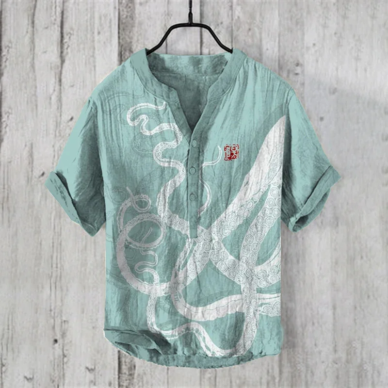 Be the first to review “2025 Elegant Comfortable Fashion Shirt Men’s Summer New Short Sleeve 3D Printed V-Neck Three-Button Holiday Shirt S-5XL”