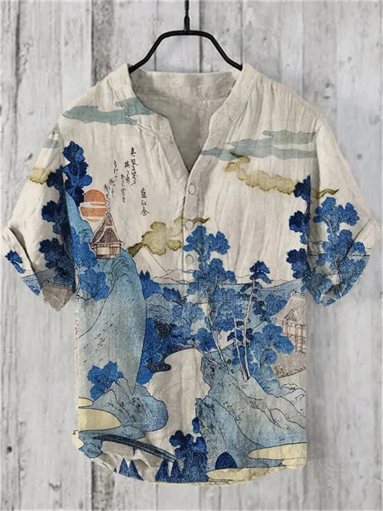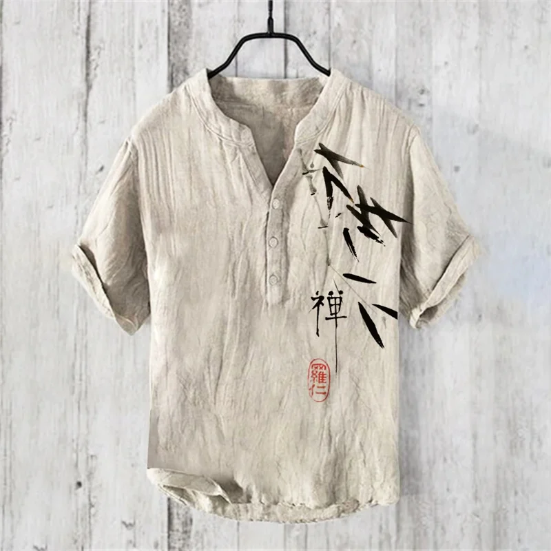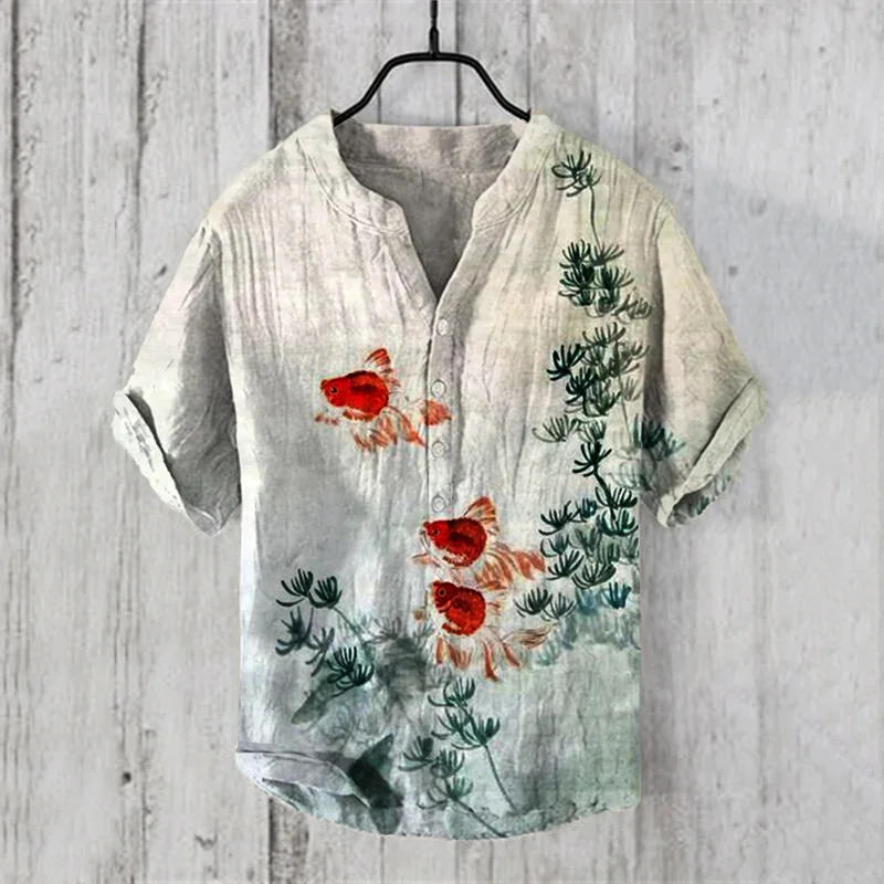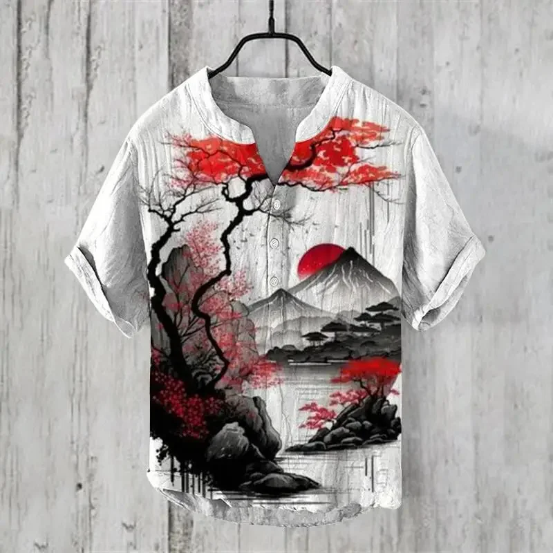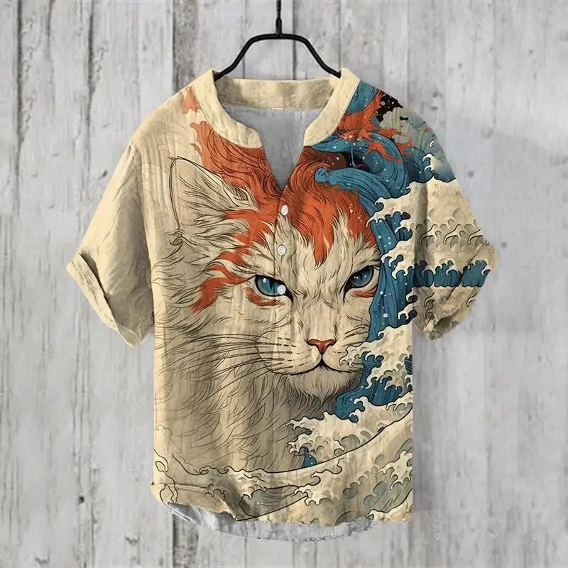 2025 Elegant Comfortable Fashion Shirt Men’s Summer New Short Sleeve 3D Printed V-Neck Three-Button Holiday Shirt S-5XL